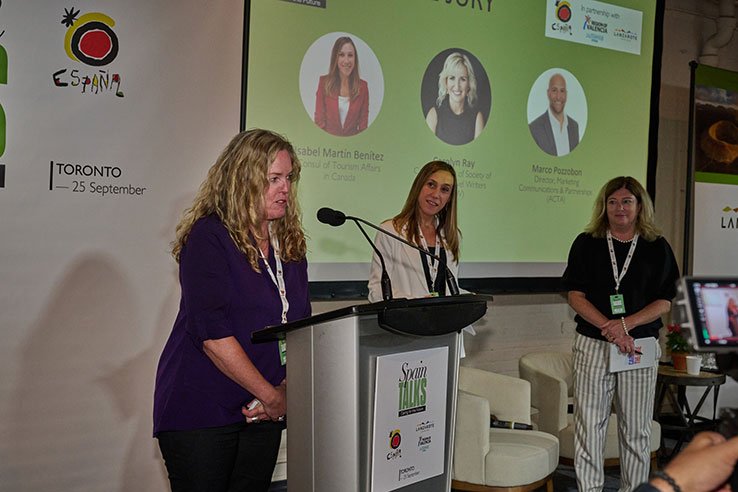 En su primera edición de “Spain Talks”, la Oficina de Turismo de España en Toronto ofreció un amplio programa de mesas redondas y conferencias con la participación de líderes de entidades y destinos referentes en el ámbito turístico de Canadá y España. La Oficina de Turismo de España acogió esta jornada enfocada en la sostenibilidad social del turismo con la idea de compartir experiencias valiosas y mejores prácticas sobre los principales retos de los grandes destinos turísticos, como España, para fomentar un turismo más responsable y comprometido. Una oportunidad para el diálogo, la colaboración y el intercambio de conocimientos en torno a la accesibilidad de los destinos y la búsqueda de equilibrio entre la práctica turística y la comunidad local.